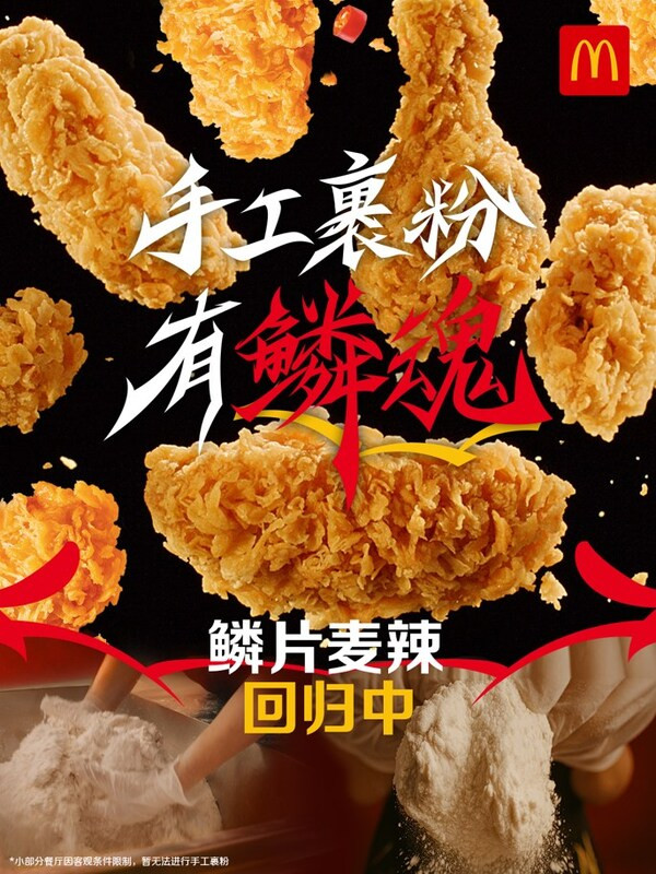 麦当劳中国宣布麦辣系列回归手工裹粉